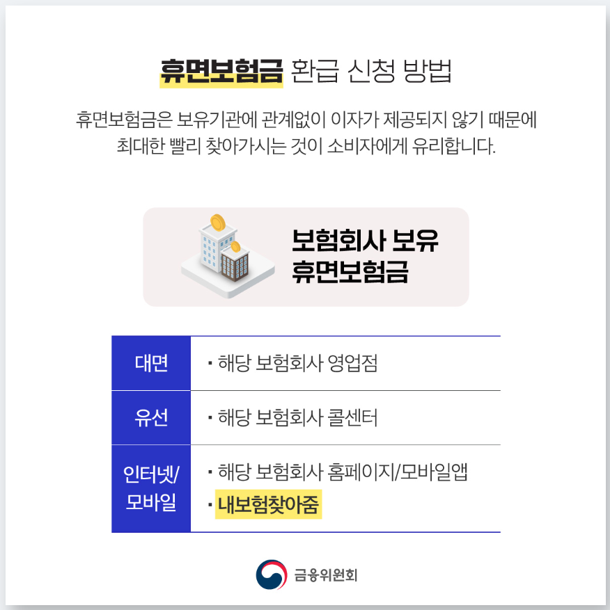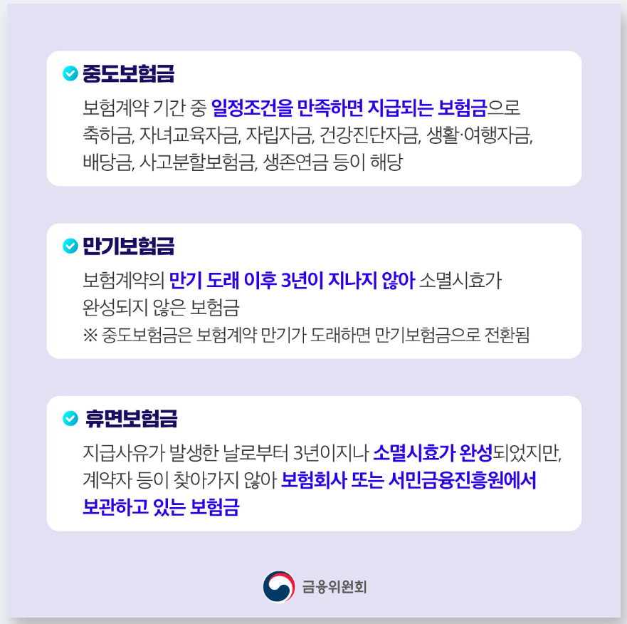 - 숨은 보험금 확인 → 중도·만기·휴면보험금 여부 확인 및 청구 방법 안내